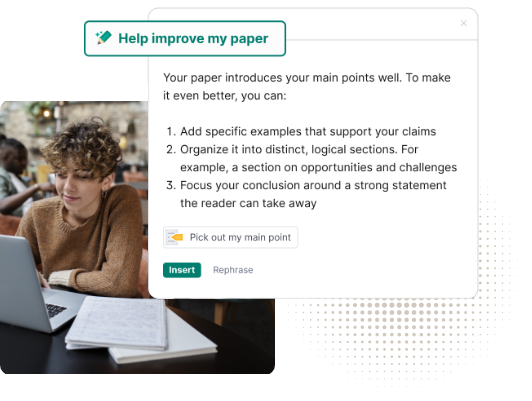 Provides real-time guidance that helps students learn while writing. Improves submission quality and reduces the need for time-consuming remediation loops.
